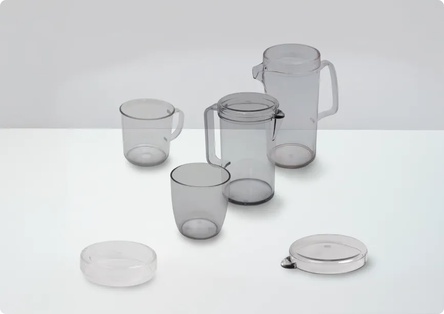 Unser Sortiment besteht aus der farbenfrohen COLORED-Serie aus Polypropylen und einer transparenten Like-Glass-Geschirrserie – robust, langlebig und perfekt für den täglichen Einsatz